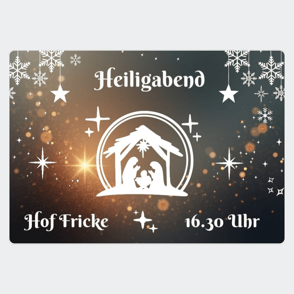 Seid Willkommen zum Weihnachtsgottesdienst mit Krippenspiel auf dem Hof Fricke in Ihme-Roloven.