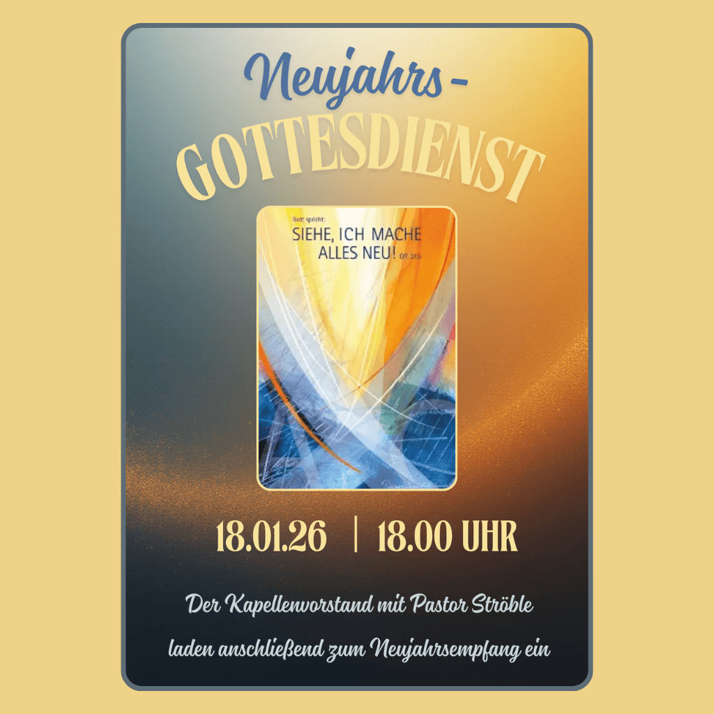 Im Anschluss laden der Kapellenvorstand und Pastor Ströble herzlich zum Neujahrsempfang in das Dorfgemeinschaftshaus ein.