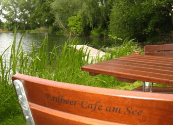 Entspannen Sie sich direkt am Erdbeerfeld inmitten idyllischer Natur und am Wasser in unserem Café.