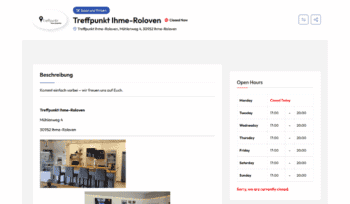 Monday, Tuesday, Wednesday, Thursday, Friday, Saturday und Sunday. — — Sind noch in der Öffnungszeitenfunktion in Englisch.